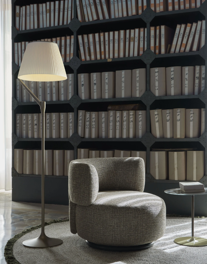 Une lumière généreuse, diffusée et appréciée dans l'espace. ANGELO STONE, la lampe de Philippe Starck, révolutionne l'agencement ampoule/abat-jour : la source lumineuse n'est pas située au-dessus, mais provient d'une LED placée sur la tige qui éclaire le capuchon, point de départ d'un jeu de reflets créé par des lentilles de haute technologie. Grâce à son abat-jour monobloc moulé en polycarbonate écologique, la lumière est diffusée de manière encore plus homogène. ANGELO STONE est disponible en version lampe de table et lampadaire, et en trois finitions : champagne, cuivre et titane.