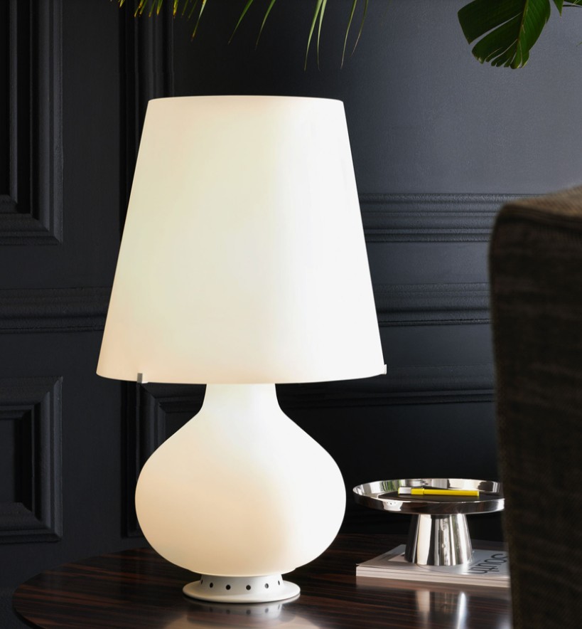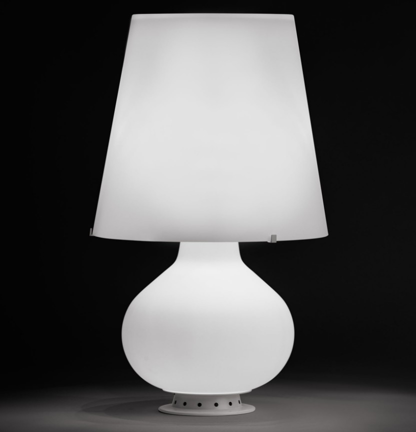 Lampe de table à lumière diffuse et à double interrupteur non dimmable. Le double interrupteur permet d'éclairer séparément le diffuseur et le socle. Cadre en métal peint. Diffuseur et base en verre soufflé satiné. Cordon d'alimentation noir, interrupteur et prise. Prise européenne bipolaire. Source lumineuse non incluse.