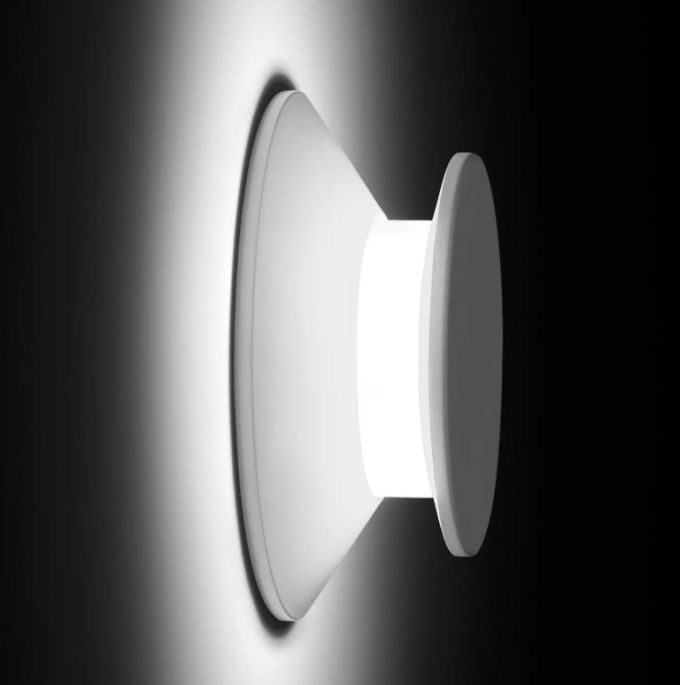 L'applique murale Micro est produite par Vibia en deux finitions : blanc laqué et oxyde (rouille).
