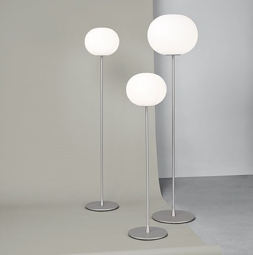 DESCRIPTION: Lampadaire à lumière diffuse. Diffuseur composé d'un verre opalin soufflé à la bouche, soufflé à la bouche, soufflé à la bouche et d'une bague filetée moulée sous pression avec finition à l'alodine. Base en acier de haute épaisseur peinte en gris et tige et support de diffuseur en aluminium moulé sous pression. Sur le câble il y a le gradateur électronique qui permet la régulation de la luminosité.