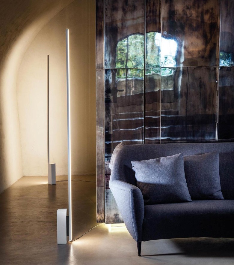 Famille de luminaires (lampadaire, applique et plafonnier) polyvalents à très haut rendement lumineux avec développement linéaire. Structure en aluminium extrudé, diffuseuren polycarbonate blanc mat. Les versions encastrables, plafond et mur, sont fournies avec un kit de connexion et d'alimentation (convertisseur à déporter). Finitions en blanc ou noiravec parties des éléments peints en gris pour les versions lampadaire et applique.
