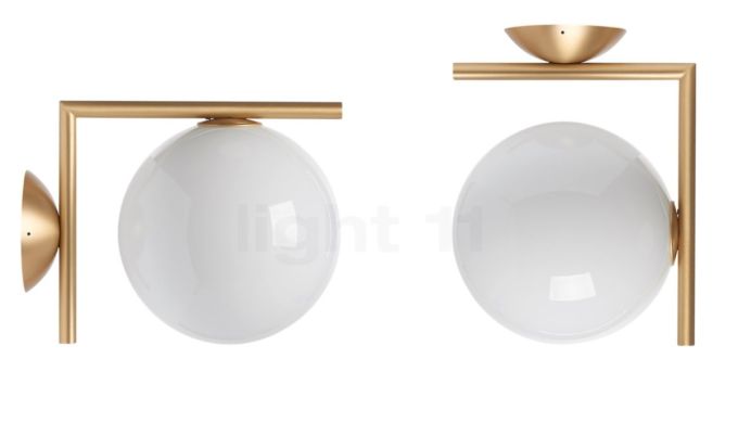 DESCRIPTION: Applique murale-plafonnier à lumière diffuse. Cadre en laiton, brossé et verni transparent ou en acier chromé. Diffuseur opale en verre soufflé.