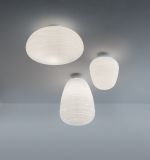 Les plafonniers Rituals traduisent la magie des lanternes en papier washi de la tradition japonaise dans des formes au design contemporain réalisées en verre soufflé et à la surface striée. D’un volume plus imposant, le plafonnier Rituals 2 offre une lumière chaude et vibrante de soleil.