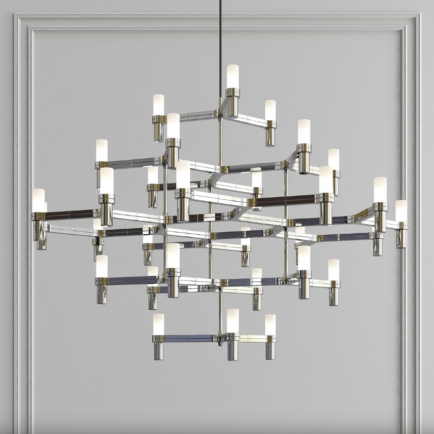 Famille de lampes de suspension dont la forme s’inspire du contour du cristal de neige.