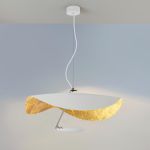 Lederam représente la rigueur du geste fait pour tracer une ligne, tandis que les disques aux couleurs chaudes et douces renferment un module LED ultra-plat, qui permet de créer des lampes minces et des formes suspendues aux lignes courbes et sinueuses.