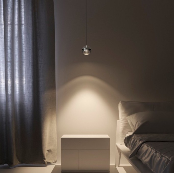 La Limbus est une suspension à lumière directe conçue par Emanuele Ricci. Elle ressemble à une petite planète lumineuse projetant sa lumière vers le bas.