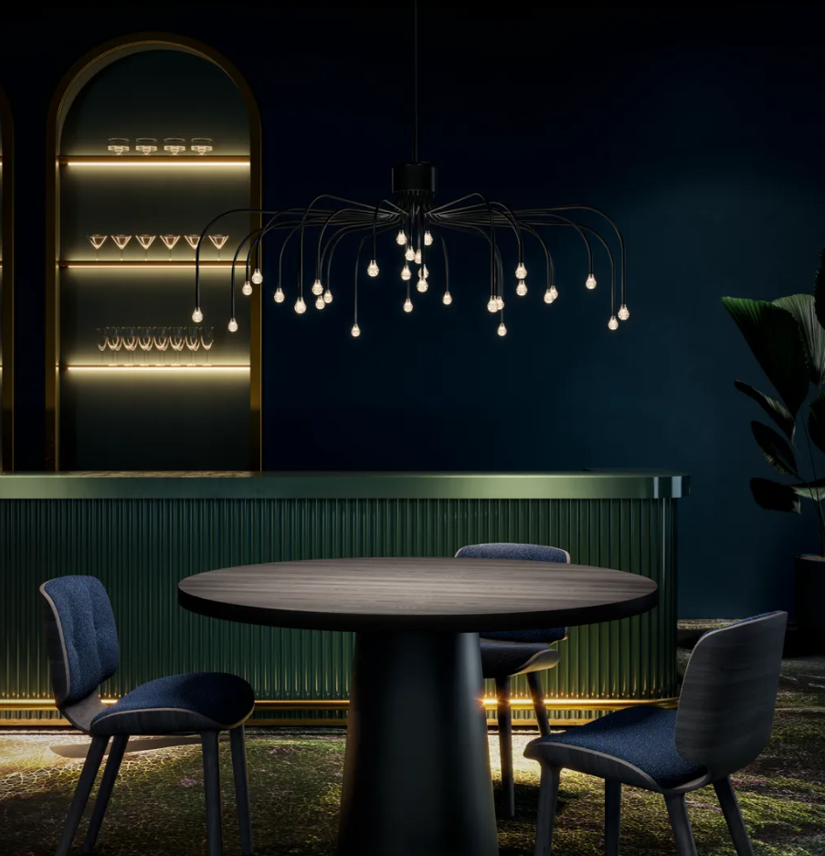 Vivez sous les étoiles avec la lampe Starfall Light de Front ! Grâce à cette toute nouvelle constellation, vous pouvez dormir ou dîner à la belle étoile chaque soir. Inspirée par la nature et issue de la science, la lampe Starfall Light est un lustre contemporain inversé qui vous offre cette sensation magique que l'on éprouve en contemplant le ciel étoilé.