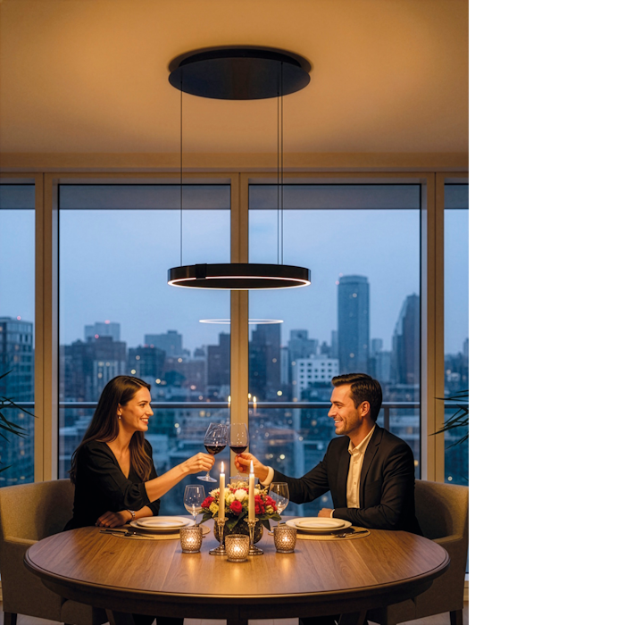 La nouvelle suspension LED ZEN exclusive de Top Light séduit par son anneau en aluminium robuste, disponible en plusieurs coloris avec éclairage direct ou indirect. Grâce à son système intégré innovant de commande gestuelle et lumineuse, son réglage en hauteur et ses versions compatibles avec la domotique Casambi et/ou le réglage électrique de la hauteur par télécommande, elle répond à toutes les attentes.