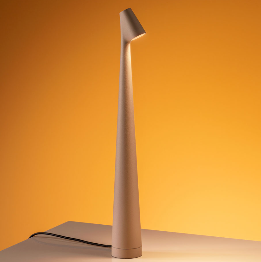 Cette lampe au pied conique élancé terminé par une tête élégante invite à tendre la main pour s’en saisir. Disponible en deux dimensions, la lampe de table portable Africa présente une texture mate laquée, disponible en quatre finitions aux tons naturels qui apportent chaleur et présence au design. Sa source LED rechargeable permet trois niveaux d’intensité, réglables par une simple touche placée sur la tête de la lampe.